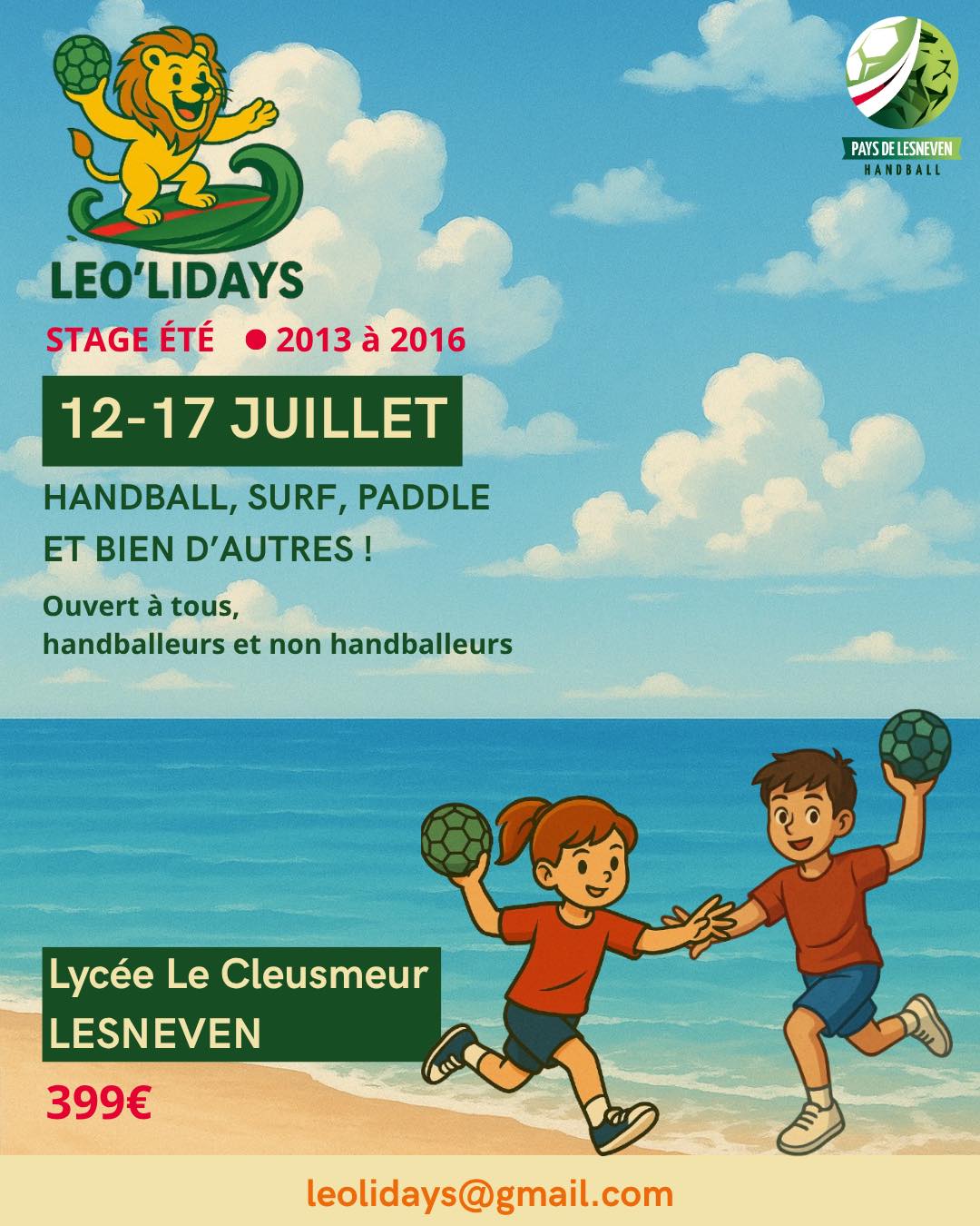 Les séjours sont ouverts à tous : handballeurs confirmés ou néophytes, licenciés du club ou non !